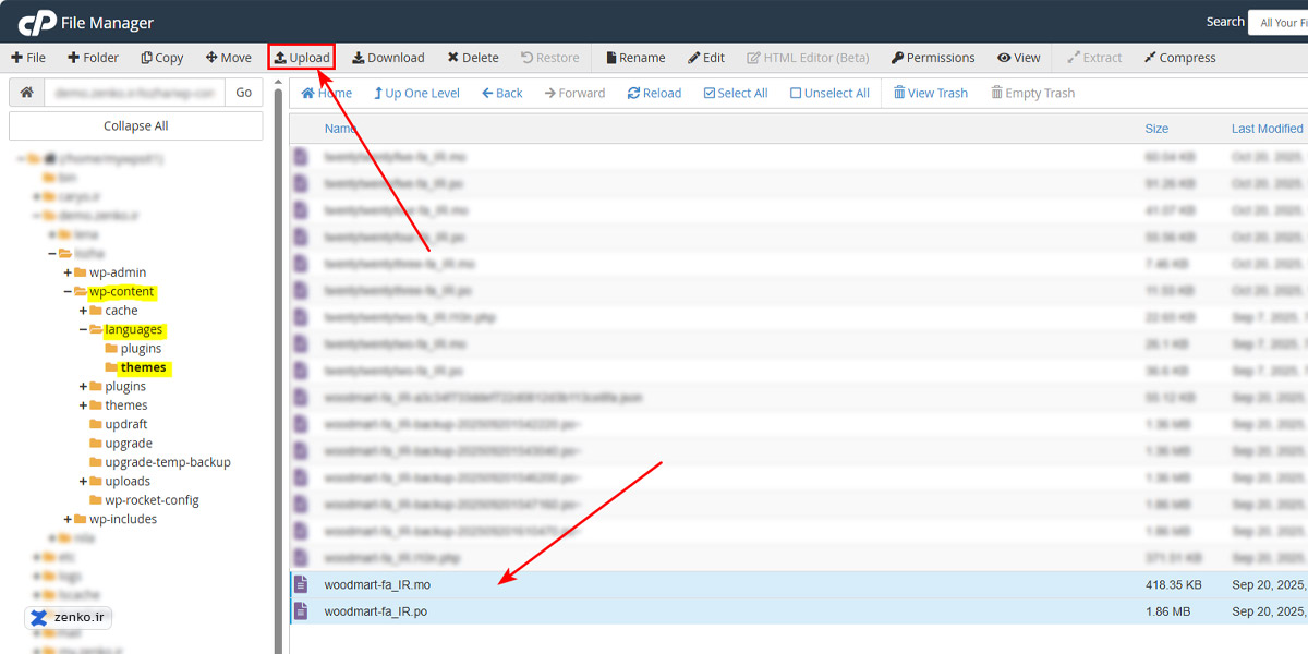 اگر هنگام خرید قالب، یک فایل ترجمه فارسی دریافت کردهاید، برای فعال شدن آن باید فایلها را در مسیر درست آپلود کنید.