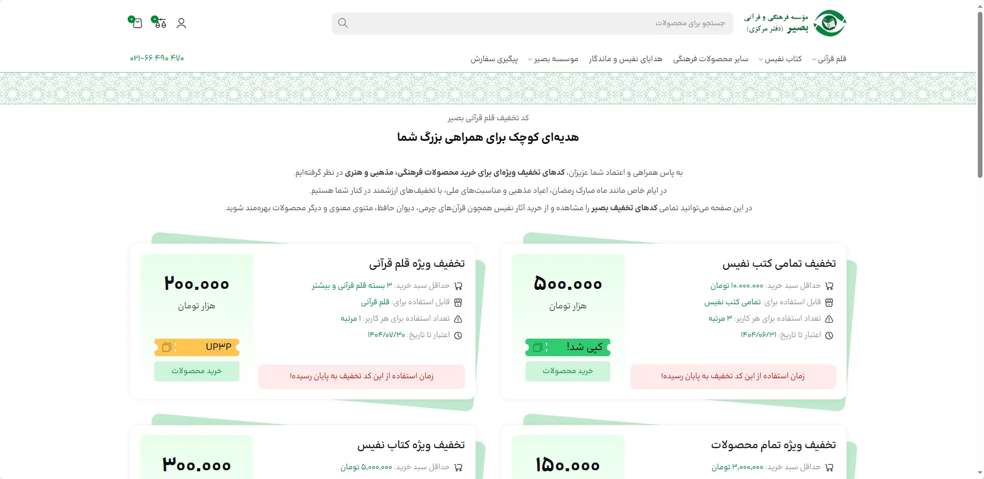 موسسه فرهنگی قرآنی بصیر یک مرکز معتبر و تخصصی در عرضه محصولات قرآنی، مذهبی و فرهنگی است که با هدف ترویج فرهنگ غنی اسلامی و حفظ ارزش های معنوی فعالیت می کند. این موسسه سال هاست که به صورت حرفه ای در زمینه تأمین و عرضه محصولات فاخر فرهنگی فعالیت دارد و با نام شناخته شده ی بصیر سنتر در فضای آنلاین شناخته می شود.